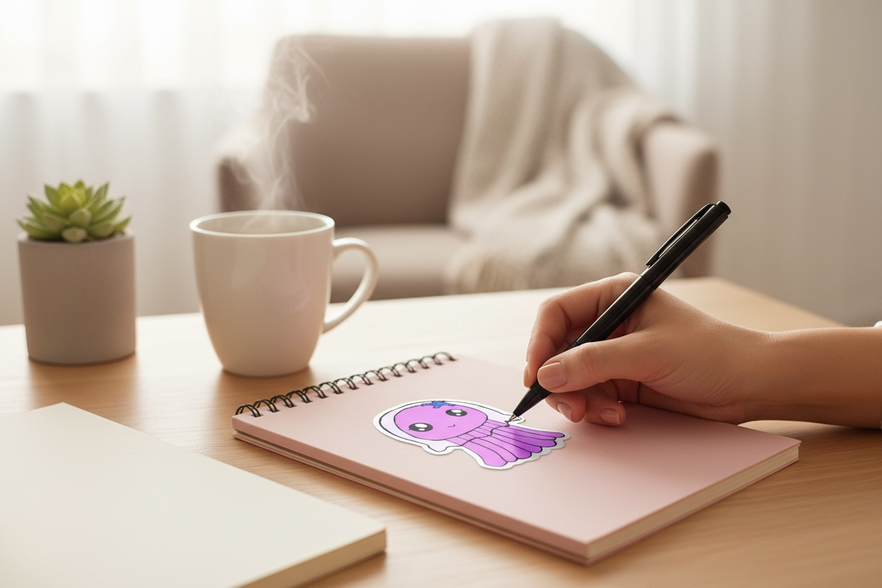 Printed on durable, weatherproof vinyl—waterproof and ready for your water bottle, laptop, or journal—Drops comes with a story card and gentle affirmation to help you feel seen and safe, just as you are.