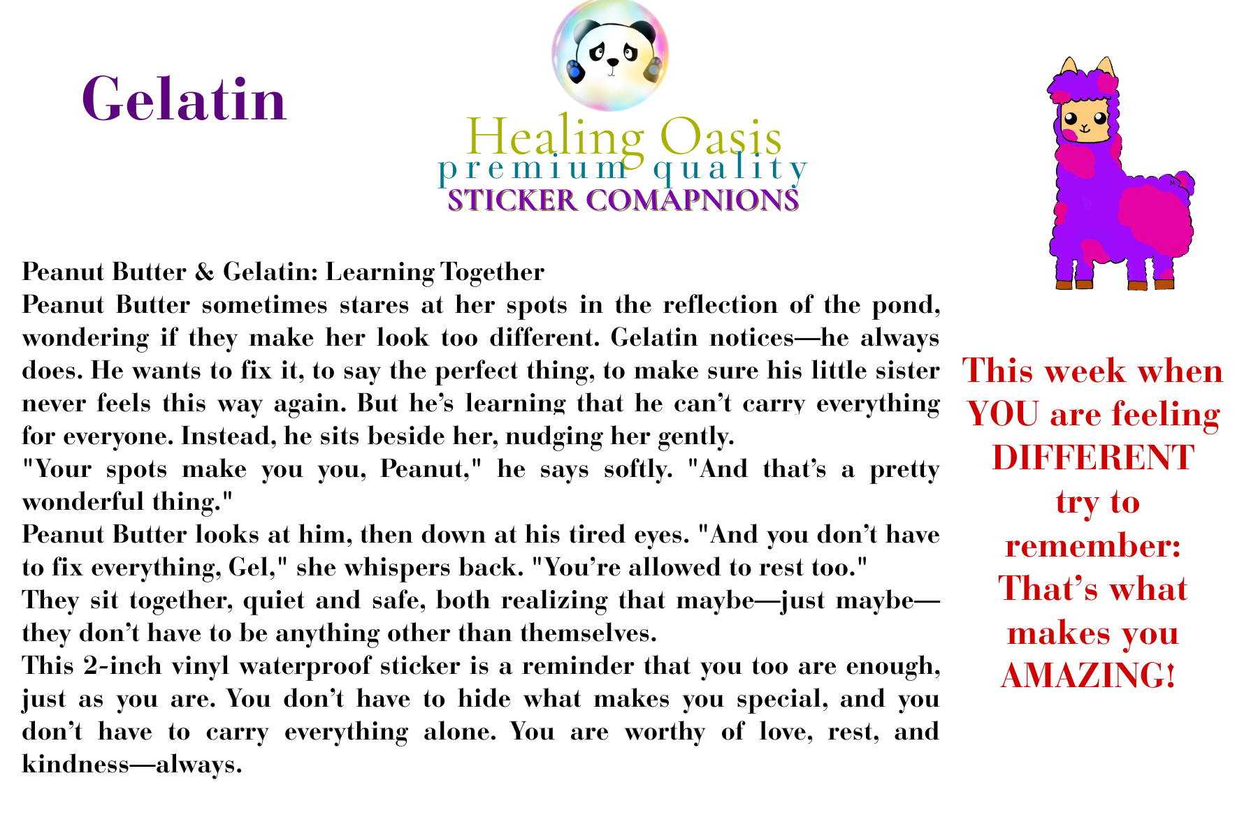 GELATIN the llama sticker is here for those moments when you feel like everything is your responsibility—but it’s okay to take a step back. GELATIN is the ultimate dependable friend, always ready to carry the load, but even he knows that balance is key. This sticker serves as a reminder that you don’t have to handle everything alone and that sometimes, it’s okay to delegate, rest, and trust others.