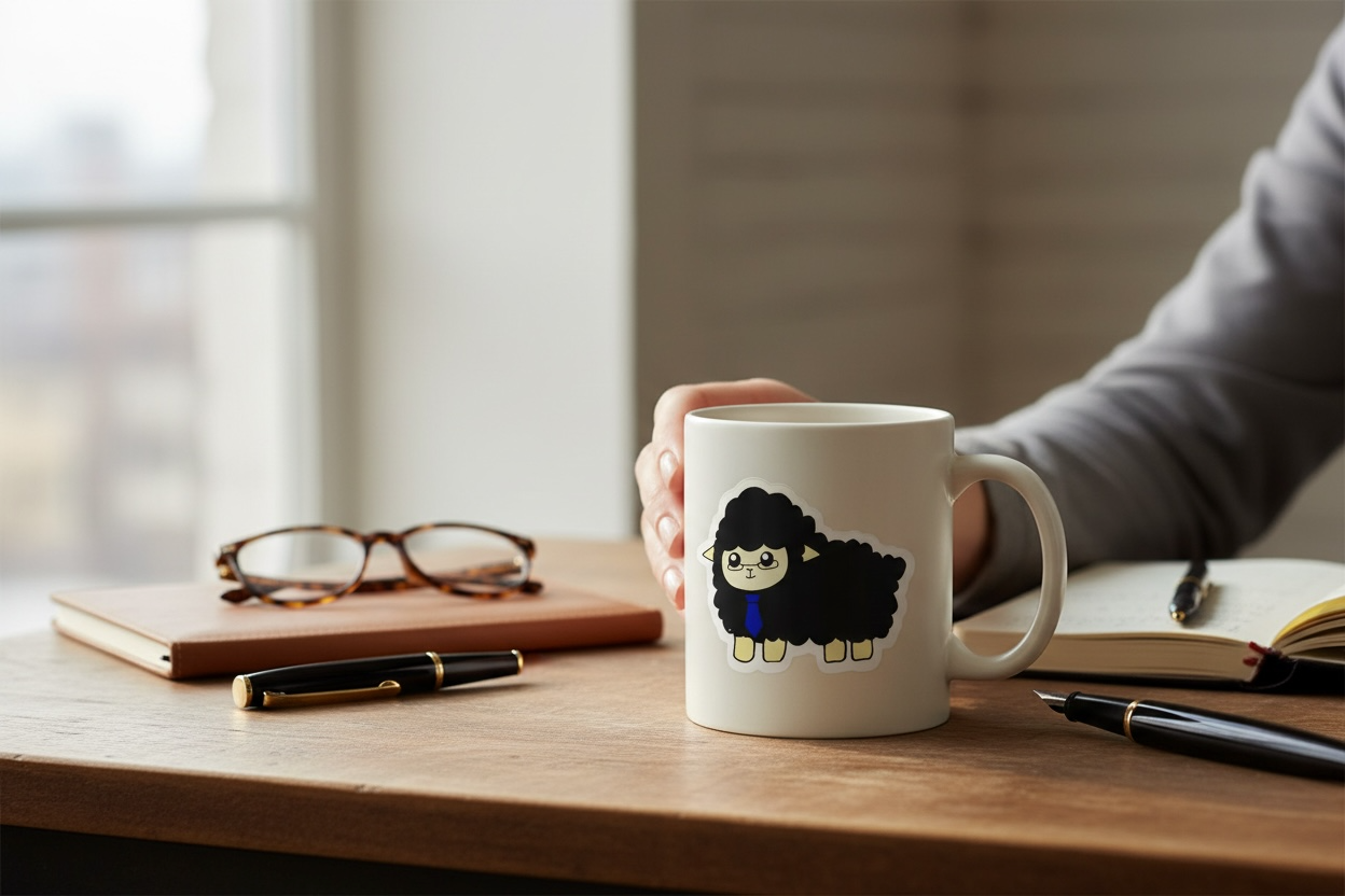 Pa the Wise Sheep wears a Blue tie and a calm expression, like someone who’s seen many seasons and still believes in hope. He’s quiet but steady—the kind of soul who listens more than he speaks, and when he does speak, it’s exactly what you needed to hear.